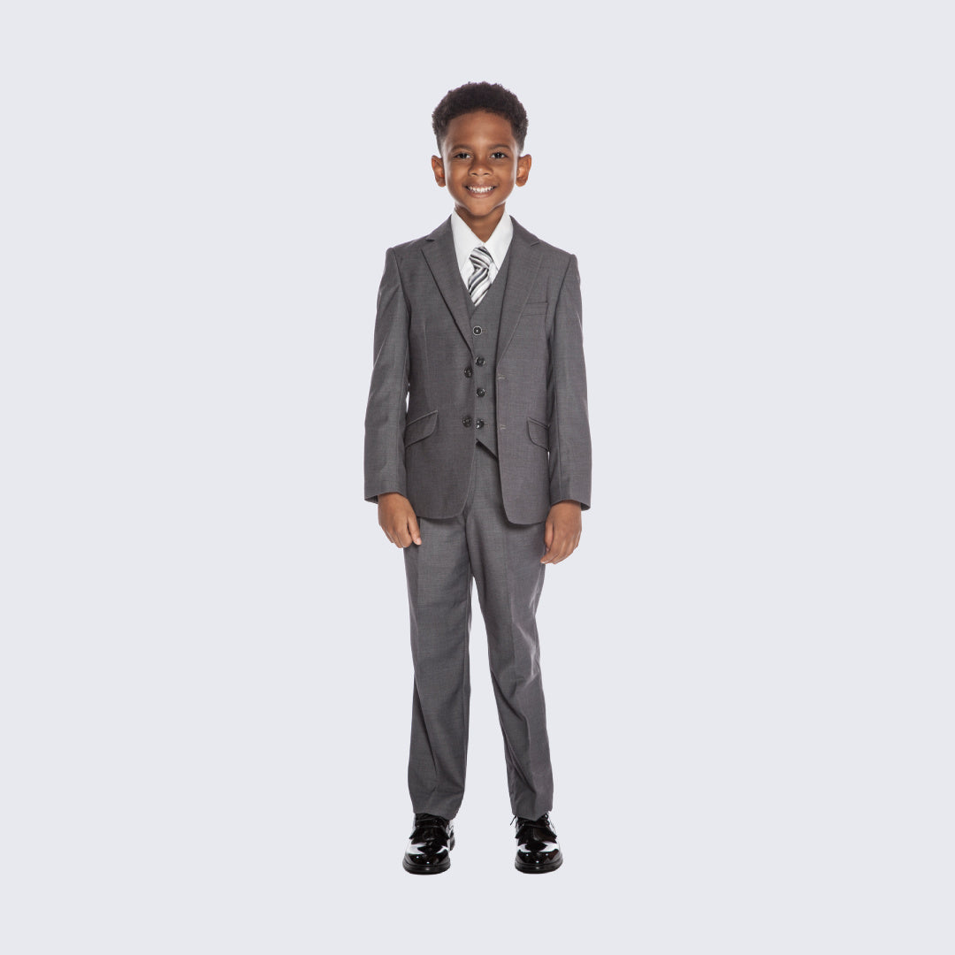 Dress your son to impress in a stylish suit from KidsSuits.com! We offer a wide variety of boys' suits in various colors, fits, and styles to suit any formal occasion. Find the perfect suit for toddlers, boys, and teens, whether they need a classic look for a wedding or bar mitzvah, or a trendy outfit for prom or graduation.