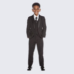 Boys Black Tuxedo Slim Fit Shawl Lapel 5-Piece Set for Kids Teen Children - Wedding