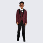 Boys Burgundy Tuxedo Slim Fit Shawl Lapel 5-Piece Set for Kids Teen Children - Wedding