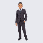 Boys Dark Gray Slim Fit Suit 5-Piece Set by Perry Ellis for Kids Teen Children - Wedding