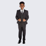 Boys Dark Grey Suit 5-Piece Set for Kids Teen Children - Wedding