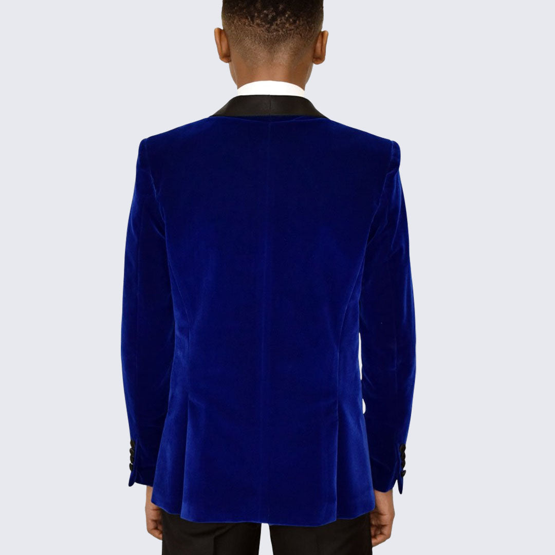 Boys Royal Blue Velvet Blazer Slim Fit for Kids Teen Children - Wedding